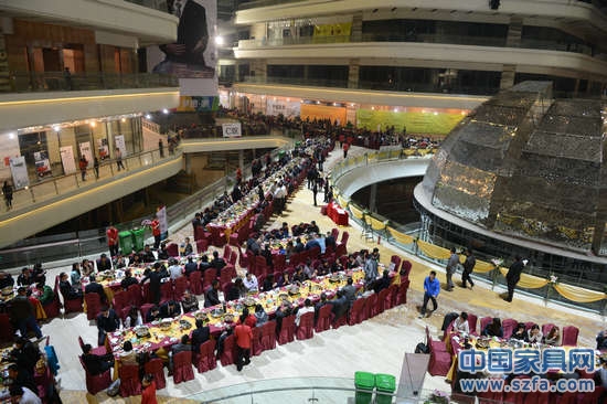 1月28日晚,中國(佛山)國際家居博覽城在項目本部二層的中央大街舉辦了主題為“家居群英會,璀璨迎新年”的全球家居精英新春答謝晚宴。當(dāng)晚,主辦方不僅安排了香車名模表演、音樂噴泉匯演、幻彩燈光秀等豐富節(jié)目,送出幸運(yùn)大利是、iPhone5等驚喜大獎。來自國內(nèi)十大銀信機(jī)構(gòu)、各省市家具協(xié)會和中國家具協(xié)會、中國家居品牌聯(lián)盟、廣東省家具協(xié)會、廣東省家具商會等行業(yè)組織的領(lǐng)導(dǎo)和代表們,以及入駐商戶代表和行內(nèi)各大媒體朋友們,共4250位賓客濟(jì)濟(jì)一堂,交織情誼,共襄盛宴,暢談未來發(fā)展。 家博盛景創(chuàng)新展現(xiàn),家居殿堂奏新篇章