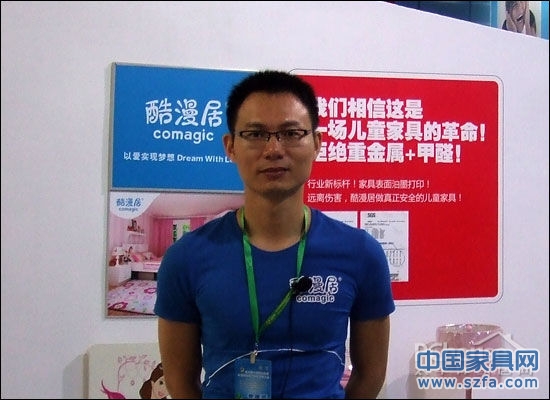 【張國輝】酷漫居本次帶來的兒童家具產(chǎn)品是我們2012年最新推出的魔方兒童家具產(chǎn)品系列,酷漫居魔方兒童家具第一個采用E0級環(huán)保標準板材進行生產(chǎn),經(jīng)過第三方權威機構SGS檢測,其產(chǎn)品甲醛釋放量為0.4毫克每升,遠低于今年8月1日新出臺的行業(yè)標準要求的1.5毫克每升。同時使用UV油墨打印上去的,經(jīng)檢驗,重金屬未檢出,可以這樣說,酷漫居魔方兒童家具有可能是目前市場上最環(huán)保的兒童家具。