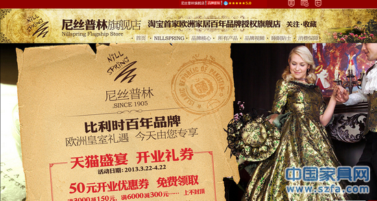 2013年4月16日,尼絲普林天貓旗艦店正式開(kāi)業(yè),開(kāi)業(yè)期間將推出“60天試睡”活動(dòng),在這個(gè)春暖花開(kāi)的日子里,尼絲普林將為您“按摩”疲累的身體。與此同時(shí),尼絲普林也會(huì)參與天貓16日開(kāi)展的“家裝五一搶先購(gòu)”大型家裝家具促銷活動(dòng),此次活動(dòng)商品均為工廠直供,五折成本價(jià),產(chǎn)品品類豐富,同時(shí),匯聚了國(guó)內(nèi)一線品牌,70個(gè)城市可直接預(yù)約發(fā)貨,讓您五一假期前輕松,滿意的完成選購(gòu),享受高品質(zhì),省到家,服務(wù)到心窩的完美購(gòu)物體驗(yàn),把寶貴的五一假期留給家人,留給旅游;