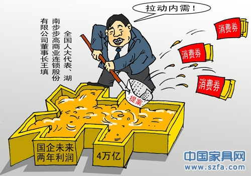 王填在議案中提出,擴內(nèi)需是2012年經(jīng)濟工作的重點,消費增長成為最關(guān)鍵的因素。民眾的消費行為受到制約,并不是他們?nèi)狈οM的意愿和需求,而是受制于消費的能力。這個時候,國家實施積極的消費政策,提高民眾的消費“底氣”,正當其時。他建議全國人大通過這一議案,將發(fā)放四萬億“消費券”的計劃提升到國家政策和法律的高度,快速展開調(diào)查研究,并出臺相關(guān)制度和法規(guī),督促國家有關(guān)部門盡快讓這一利國利民的舉措付諸實施。