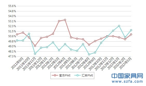 2013年3月,中國制造業(yè)采購經(jīng)理指數(shù)(PMI)為50.9%,比上月上升0.8個百分點,連續(xù)6個月位于臨界點以上。