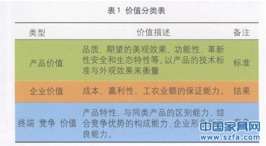 價值不僅指產(chǎn)品的價值,還包括企業(yè)的價值和終端競爭價值。(見表1)
