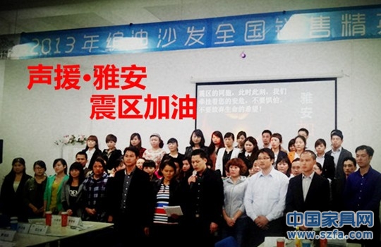 由于4月20日四川雅安7.0級地震發(fā)生,身處桃花島的學(xué)員們并沒有與世隔絕,馬上組織起來,發(fā)起聲援雅安震區(qū)災(zāi)民的活動,繽迪沙發(fā)董事長黃國斌鼓勵雅安人民要加油,不要放棄希望。
