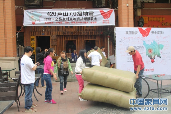 2013年4月23日下午,深圳夢之美家居總經(jīng)理張文魁、副總楊剛一行五人帶著趕制出的首批價值五萬余元的一千余件多功能抱枕和兩百多件嶄新的衣服送往成都神仙樹雅安天全縣定點物資捐贈點,由捐贈點直接發(fā)往天全縣重災(zāi)區(qū)。在捐贈點,公司領(lǐng)導(dǎo)與捐贈點負(fù)責(zé)人進行了交流,對捐贈物資進行了登記并了解了災(zāi)區(qū)的情況,并就下一步的捐贈進行了溝通和部署,張總決定,親自帶隊隨捐贈點車隊進入災(zāi)區(qū)協(xié)助賑災(zāi)工作。