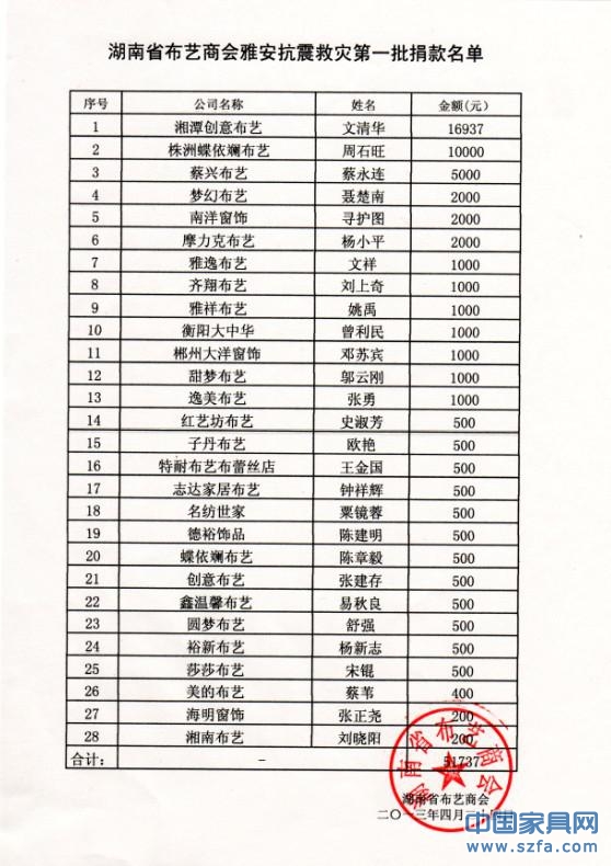 蝶依斕愛(ài)心人士參與湖南省布藝商會(huì)組織的雅安抗震救災(zāi)