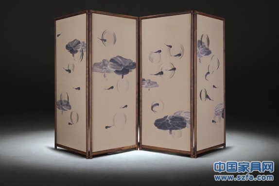 展品介紹:作品規(guī)格:寬2800、高1600(毫米);材料:胡桃木、銅、絹布。其創(chuàng)新性表現(xiàn)在經(jīng)過(guò)風(fēng)的吹拂,或是輕輕的觸碰,屏風(fēng)表面會(huì)出現(xiàn)水波變化,猶如水中漣漪;實(shí)用性:在炎炎夏日在家中也能感受到湖邊漫步清涼之感;環(huán)保性表現(xiàn)在產(chǎn)品材料為胡桃木、銅、絹布,均為天然環(huán)保產(chǎn)品;工藝性表現(xiàn)在屏風(fēng)裝裱方式沿用中國(guó)傳統(tǒng)工藝屏風(fēng)的裝裱方式。定制連銅質(zhì)連接件,讓銅與胡桃木結(jié)合;美觀性:畫面底色使用傳統(tǒng)國(guó)畫技法。