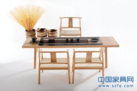 展品介紹:如硯茶桌,在傳統(tǒng)茶桌的形制下,以墨石與原木為材質,將筆墨意境與茶道意境融為一體,墨石如一汪潭水清澈,于方寸間營造出寧靜深遠的禪意境界。