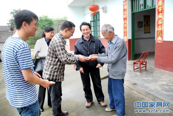 5月16日,筆者在株洲市蘆淞區(qū)姚家壩鄉(xiāng)稍光鋪村見到了抗日遠(yuǎn)征軍、抗美援朝老兵、91歲的曠申應(yīng)老人,老人家緊握筆者的手、十分高興地說:“今天汽車終于開到我的家門口了,這是我盼望了10多年的心愿。”老人家激動的說:“這要感謝民建蘆淞總支和民建會員的大力支持。”
