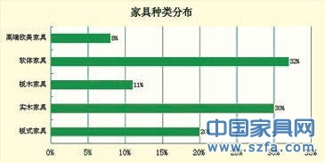 通過走訪浙江嘉興、湖州、杭州三地的9個(gè)賣場,經(jīng)過數(shù)據(jù)分析得出:賣場家具種類占比中軟體和實(shí)木家具占據(jù)了大半壁江山,分別為32%和30%。軟體家具由于其色彩以及舒適度上更受年輕一代消費(fèi)者的喜歡,而實(shí)木家具,隨著近幾年實(shí)木風(fēng)的興起,實(shí)木家具品牌越來越多,眾多非實(shí)木家具企業(yè)也紛紛涉水實(shí)木家具。板式與板木分別為20%、11%;高端歐美家具8%。就分布而言,實(shí)木家具以及高端歐美家具則大都位于賣場的高層。