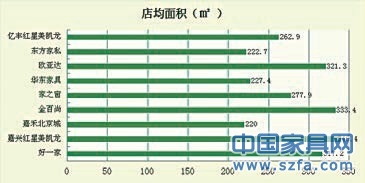 從各賣場的店面面積來看,平均面積在200 ,其中嘉興紅星美凱龍與湖州的金百尚以及杭州的歐亞達(dá)平均面積均超過300 。調(diào)研顯示,經(jīng)銷商的店面面積都在150以上。