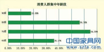 經(jīng)調(diào)查,進(jìn)店購買家具的消費(fèi)者年齡層次主要為70后,占比64.89%;其次是80后,占比56.38%;60后的消費(fèi)人群比例為36.17%;最少的是90后,占比18.08%。家具行業(yè)作為房地產(chǎn)的下游產(chǎn)業(yè)深受房地產(chǎn)行業(yè)的影響,目前來看,買房的主力軍仍是70后、80后,因此相對應(yīng)的家具消費(fèi)主力軍也是70后、80后,而作為90后消費(fèi)者購買家具時(shí)大多會(huì)有家長的陪同,作為目前大多成功人士多的60后是一些高檔歐美及其他高端家具消費(fèi)的主力軍。