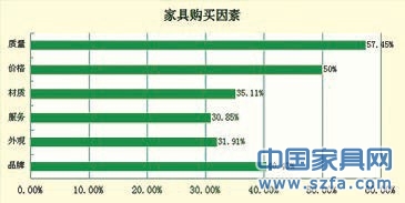 在消費(fèi)者購買家具首要考慮因素中,質(zhì)量獨(dú)占鰲頭,達(dá)到57.45%的比例;其次是價(jià)格,占比50%。由此可以看出,價(jià)廉物美一直是中國老百姓孜孜不倦的追求。