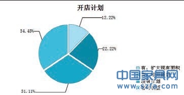 對2013年的發(fā)展規(guī)劃,34.44%的經(jīng)銷商有擴(kuò)大現(xiàn)有面積或者增開新店的計(jì)劃,其中增開新店為22.22%,擴(kuò)大現(xiàn)有面積有12.22%的比例。31.11%的人表示暫時(shí)沒有計(jì)劃,34.45%的人暫時(shí)觀望。
