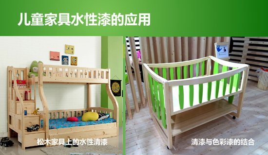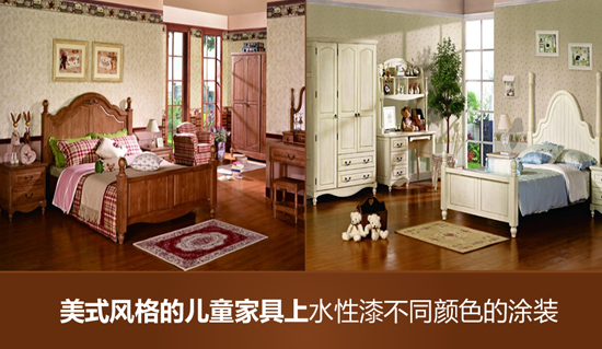 涂裝與被涂飾基材的肌理是緊密聯(lián)系的,市場(chǎng)上常用的木材有新西蘭松木、俄羅斯樟子松、芬蘭松、巴西松、落葉松,在涂裝效果上有本色涂裝、純白涂裝、水洗白米白涂裝、實(shí)色、透明色、半透明色涂裝等,涂飾時(shí)要根據(jù)基材的肌理和具體產(chǎn)品風(fēng)格來對(duì)涂裝進(jìn)行選擇。以下是市場(chǎng)上常見的兒童家具涂裝。