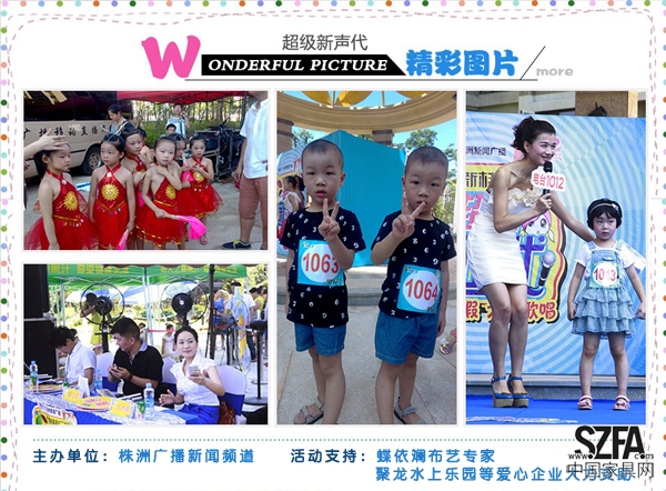 近日,由株洲廣播新聞?lì)l道主辦,蝶依斕布藝專家,聚龍水上樂(lè)園,匯源100%純果汁等愛心企業(yè)大力支助的大型兒童歌唱秀“超級(jí)新聲代”第一場(chǎng)初賽正式開幕,150多位前來(lái)參加比賽的小朋友們?cè)诎职謰寢尩呐阃略缭绲膩?lái)到了位于荷塘區(qū)建工新桂廣場(chǎng)的比賽現(xiàn)場(chǎng)。同時(shí)主辦方還設(shè)立了“蝶依斕幸福寶貝秀”攝影展,8月底將評(píng)出攝影大獎(jiǎng)。此次活動(dòng)為有夢(mèng)想、想唱歌的孩子們提供一個(gè)自我展示的絕佳舞臺(tái),充分展現(xiàn)出株洲小朋友們的才藝和積極向上的精神風(fēng)貌,為株洲創(chuàng)文添磚加瓦。
