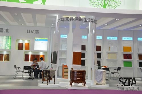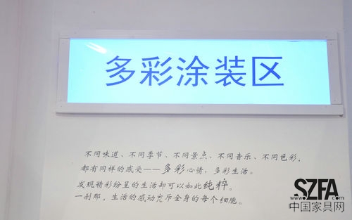 嘉寶莉本次參展在展出方式上有了較大的改變。以前更多是展示產(chǎn)品和工藝,但是從市場調(diào)查結(jié)果與歷次與參展客戶的溝通來看,客戶更習(xí)慣于從效果著手了解涂裝信息。所以本次展示方式上有兩個變化,第一是在主展區(qū)——“2013年家具涂裝主流效果區(qū)”展出了幾件體積較大的家具實(shí)物,讓觀眾直觀明了的了解家具涂裝的最新趨勢和變化;第二是根據(jù)市場發(fā)展趨勢推出實(shí)木涂裝區(qū)、多彩涂裝區(qū)、復(fù)古涂裝區(qū)、水性涂裝區(qū)等效果展區(qū),這些效果都是從全國各地幾十家大型家具制造企業(yè)調(diào)研之后重點(diǎn)推出的產(chǎn)品效果,非常有代表性,效果展示配以優(yōu)美的文字描述,讓觀眾不僅能夠看到涂裝效果,而且能夠產(chǎn)生聯(lián)想,更加直觀生動,具有非常大的參考意義。