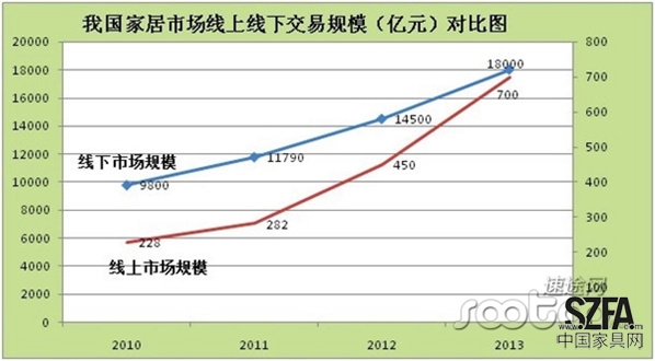 2013年家居市場(chǎng)線下規(guī)模18000億,線上僅700億元