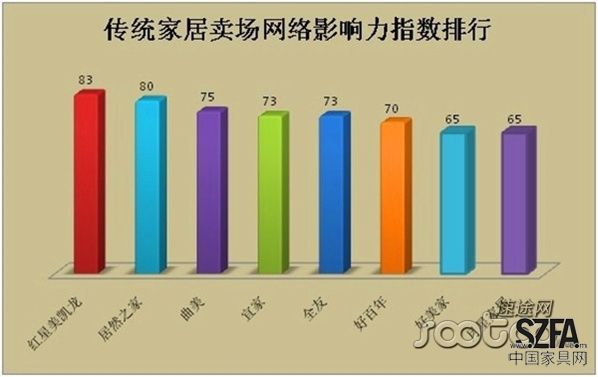 傳統(tǒng)家居賣場(chǎng)網(wǎng)絡(luò)影響力指數(shù)排行紅星美凱龍排名第一
