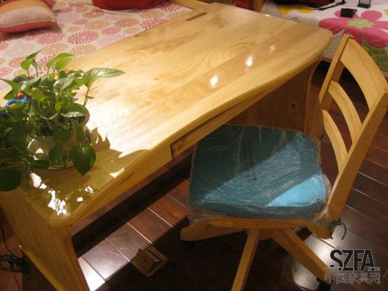 喜夢寶的書桌產(chǎn)品采用四面全封閉噴漆工藝,漆膜均勻飽滿,光澤度好,木紋紋理清晰,手感柔滑細膩。乍看外觀,覺得可能比較傾向于傳統(tǒng)書桌,方方正正,但它在靠近人體處做出的波浪曲線設(shè)置,卻讓人感覺硬朗中帶著一份時尚。