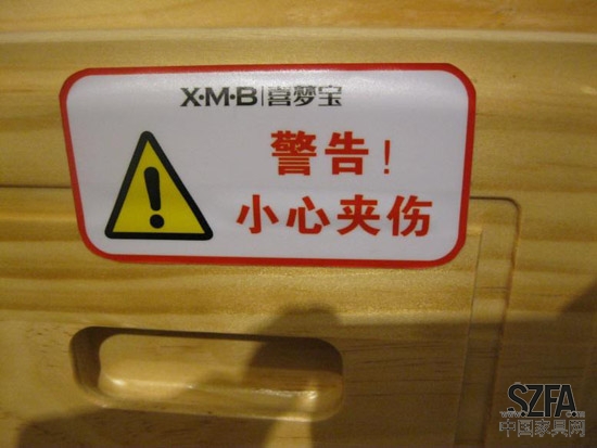 柜體上貼著醒目的“小心夾傷”警告標簽,提醒了家長們應(yīng)該注意的方面,保證了孩子的安全使用。