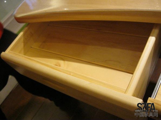 打開抽屜我們可以看到,整個抽屜內(nèi)外都是采用原木,用材相當?shù)睾竦溃@是市面上所少有的。表面打磨光滑,無毛刺。書桌臺面下非常貼心地的安置了抽屜,如此,一些不愿擺放桌面的零碎雜物或貴重品都可收納其中。