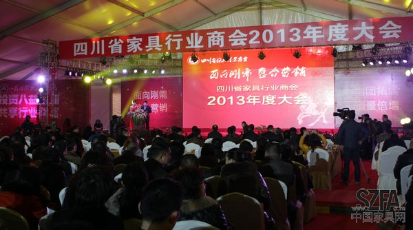 1月10日下午2點,2000余人齊聚位于溫江海峽科技園的八益國際家居博覽城,共同見證四川省家具行業(yè)商會2013年度大會的隆重舉行。中國家具協(xié)會理事長朱長嶺,四川省經濟和信息化委員會領導,四川省民政廳民管局領導,四川省家具進出口商會秘書長榮煜偉,四川省家居產品商會會長鐘文華、秘書長陳莉、副秘書長吳昊,四川省門窗協(xié)會秘書長余龍鵬,成都信用評估與誠信評價協(xié)會副秘書長張科蘭,新都家具協(xié)會會長王自松,南充市家具協(xié)會會長賈進、秘書長王華國,以及各省市家具協(xié)會代表,四川省家具行業(yè)商會會長、八益家具集團董事長王學茂,四川省家具行商會常務副會長何代強等專程出席了本次年會。四川省家具行業(yè)商會1600余會員企業(yè)出席參加,《成都商報》,《華西都市報》,《成都日報》,四川電視臺,成都電視臺,新浪網,搜房網,《深圳家具》等20余家媒體的記者到場采訪、報道。