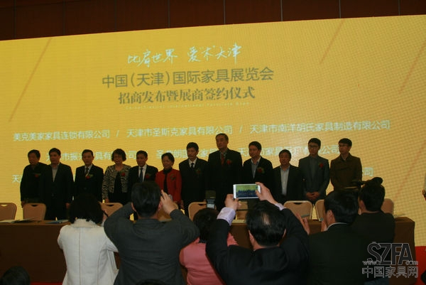 2014年1月18日14時(shí),“比肩世界 愛木天津”——中國(天津)國際家具展覽會(huì)招商發(fā)布會(huì)暨展商簽約儀式在天津梅江會(huì)展中心隆重舉行。會(huì)議正式宣告由天津市家具行業(yè)協(xié)會(huì)主辦的首屆中國(天津)國際家具展覽會(huì)將于2014年5月29日至6月1日在天津梅江會(huì)展中心盛大舉行。行業(yè)內(nèi)及大眾數(shù)十家媒體,共同見證本次發(fā)布會(huì)暨簽約儀式的圓滿成功。本次活動(dòng)更為數(shù)月后開幕的中國(天津)國際家具展覽會(huì)做好強(qiáng)力的預(yù)熱工作。