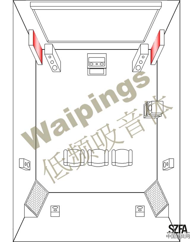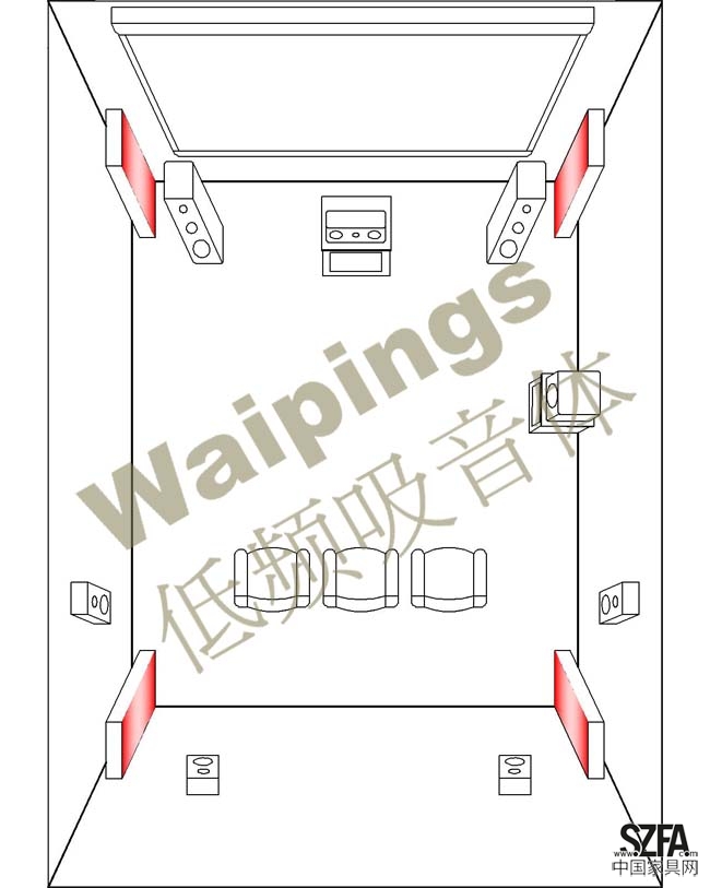 低頻駐波通常會在四個墻角聚焦最嚴(yán)重,低頻陷阱也就是放在墻角效果最好。