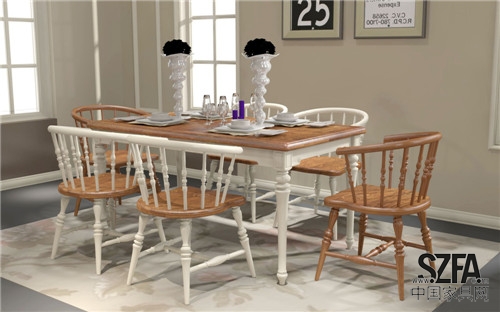 此餐桌色彩采用撞色拼接,給人以強(qiáng)烈的視覺沖擊力。加以餐桌的精致雕刻,表面十分典雅高貴,富有藝術(shù)魅力,像詩一樣醇厚,如藝術(shù)品一樣精美。
