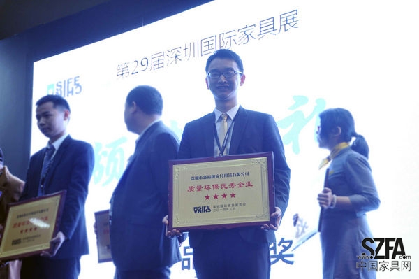 深圳市新福牌家具用品有限公司自成立以來,始終“致力于高品質(zhì)生活整體家居研發(fā)與推廣”,力求將“踐行環(huán)保”轉(zhuǎn)化成為企業(yè)責(zé)任,努力為消費(fèi)者帶來更多更健康更環(huán)保的品質(zhì)家居。此次展會,深圳市新福牌家具用品有限公司憑借一直以來不斷升級產(chǎn)品涂裝工藝技術(shù),獲得了展會主辦方授予的“質(zhì)量環(huán)保優(yōu)秀企業(yè)”榮譽(yù)稱號!?