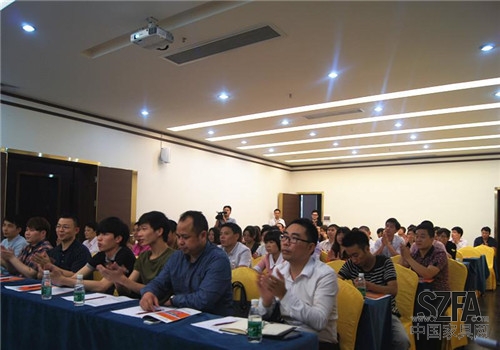 培訓(xùn)交流會(huì)開始之前,協(xié)會(huì)常務(wù)副會(huì)長(zhǎng)謝國慶上臺(tái)致辭,以其公司吉美家具集團(tuán)在電子商務(wù)方面的經(jīng)驗(yàn),闡述了電子商務(wù)對(duì)家具企業(yè)的影響和重要性,也表達(dá)了協(xié)會(huì)為會(huì)員企業(yè)辦實(shí)事的辦會(huì)宗旨,得到了與會(huì)會(huì)員代表的高度贊同和熱烈掌聲。