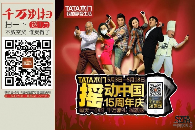 為答謝多年來消費(fèi)者對品牌的支持與信賴,TATA木門在全國范圍內(nèi)開展“TATA15周年慶,搖動中國”感恩回饋活動。