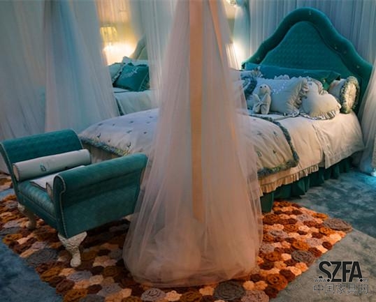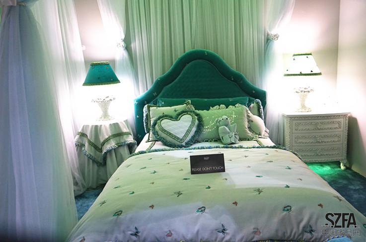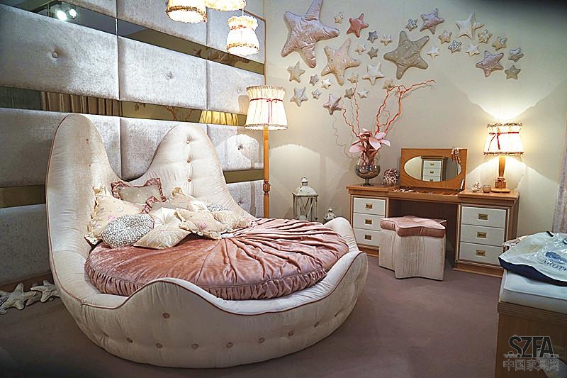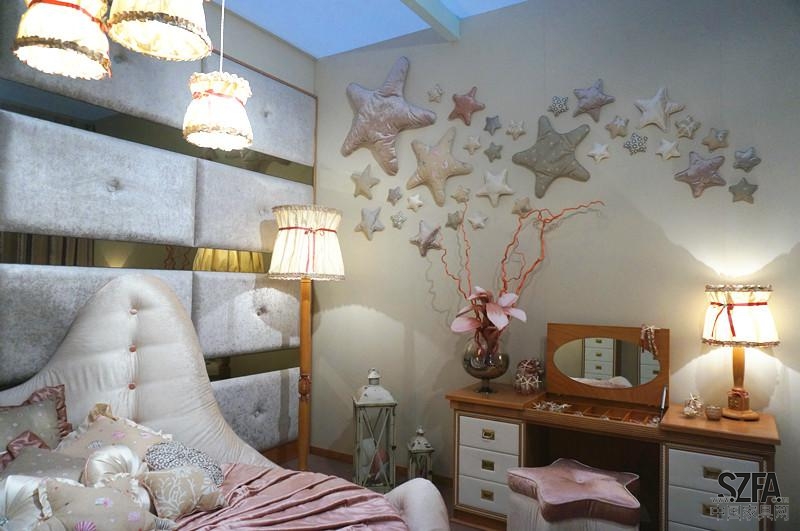 在這組家具中,裝飾品與墻上擴散的海星連成一體,梳妝臺座椅也設計成星形,給人以強烈的主題印象。錯落有致的燈具,讓空間瞬間立體了起來。