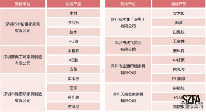 2014年深圳家具行業(yè)協(xié)會(huì)員企業(yè)產(chǎn)品抽檢情況