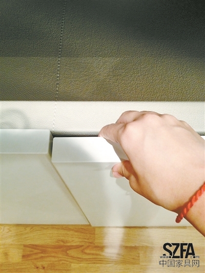 這樣的無把手設(shè)計的餐邊柜看似簡約大方,在內(nèi)側(cè)與柜門貼合的地方也做了真皮的包裹式設(shè)計,但卻沒有為開關(guān)門的過程省下太多力氣。經(jīng)過多次試驗,發(fā)現(xiàn)這樣的柜門雖然沒有太大的噪音,但“夾手指”這一問題真的很難避免。