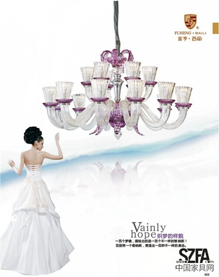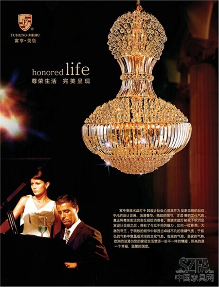6大品牌,風(fēng)格各異:富亨•美皇-傳統(tǒng)水晶燈;富亨•蕭邦-古典水晶燈;富亨•百麗-后現(xiàn)代水晶燈;富亨•美辰-古典歐式花燈;富亨•美琪-美式系列;富亨•塔塔-中式木藝燈