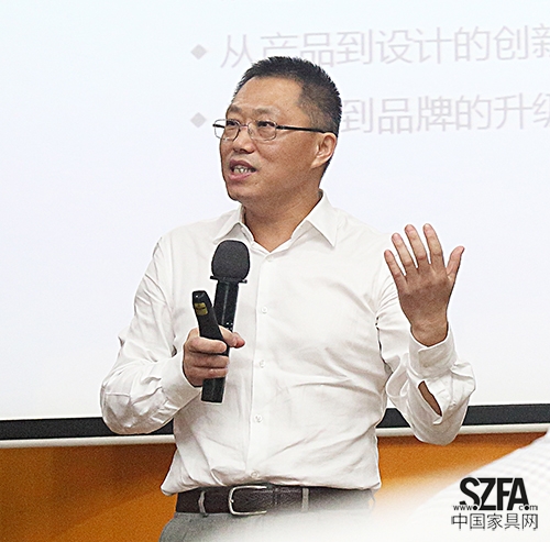 會(huì)上播放了第29屆深圳國(guó)際家具展回顧影片以及山東家具品牌先鋒形象片,用極具震撼力的視覺表現(xiàn)傳達(dá)了深圳家具如今的成績(jī)和山東家具品牌強(qiáng)大的發(fā)展?jié)摿?。而后,侯?huì)長(zhǎng)從深圳家具業(yè)以及深圳家協(xié)的前后變化講起,講述了思維上的改變?nèi)绾斡绊懳磥?lái)發(fā)展,其中最重大的改變就是從做產(chǎn)品到做品牌的大轉(zhuǎn)變,為行業(yè)謀取了巨大的發(fā)展空間。并通過(guò)列舉柏森、左右家私、芝華士這幾個(gè)大品牌形象升級(jí)前后的對(duì)比圖,展示了品牌形象塑造的重要性。最后借鑒深圳的發(fā)展模式總結(jié)出山東家具的崛起之路五個(gè)要點(diǎn):建立品牌運(yùn)營(yíng)意識(shí)、樹立戰(zhàn)略布局思維、確立區(qū)域品牌地位、用專業(yè)貿(mào)易平臺(tái)支撐和加強(qiáng)生產(chǎn)服務(wù)業(yè)保障。