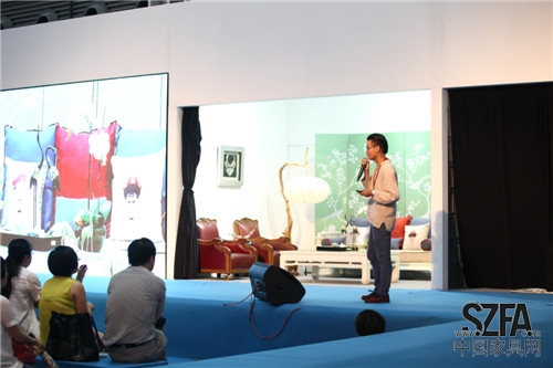 7月26日,深圳國際家居飾品展覽會開展當天,覓本品牌設計顧問 創(chuàng)始人何福林在深圳會展中心1號館帶來“新中國風混搭”現(xiàn)場家居陳設秀。