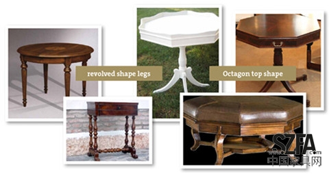原型變異與原型模仿沒(méi)有明顯的分界線,而是無(wú)級(jí)變化的。如歐洲新古典主義風(fēng)格中,車腿與八角型臺(tái)面也是深具特色的,抓住了這兩個(gè)特征,那么就可以演繹出無(wú)數(shù)的新的家具形態(tài)。如圖2所示。