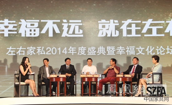 核心提示:2014年9月2日, “左右家私2014年度盛典暨幸福文化論壇” 在深圳舉行。左右家私董事長黃華坤、紅星美凱龍董事長車建新、居然之家總裁汪林朋、中國家具協(xié)會理事長朱長嶺、全國工商聯(lián)家具裝飾業(yè)商會會長月星集團(tuán)董事長丁佐宏以及左右家私品牌代言人楊瀾等參加本次會議。