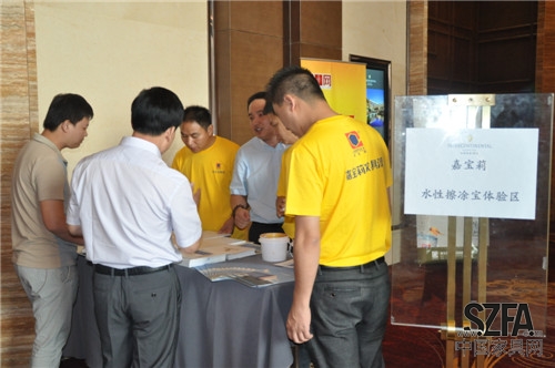 在會(huì)議現(xiàn)場,嘉寶莉展示區(qū)展示了目前國際國內(nèi)流行的木門樣板風(fēng)格,并結(jié)合現(xiàn)場的水性擦涂寶體驗(yàn),吸引眾多木門企業(yè)的濃厚興趣,在會(huì)場大放光彩,包括北京TATA木門、廣東龍樹、夢天木門、浙江開洋門業(yè)等十幾家國內(nèi)優(yōu)秀企業(yè)紛紛提出試樣要求。