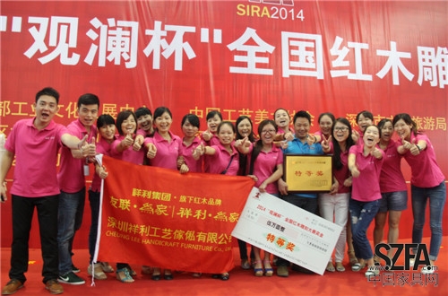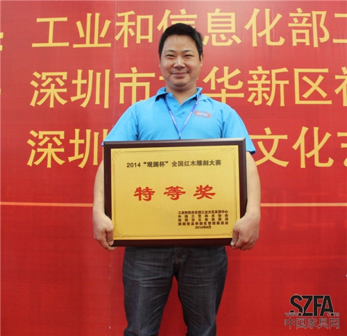 9月19日至20日,2014“觀瀾杯”全國(guó)紅木雕刻大賽于深圳會(huì)展中心隆重舉行,來自全國(guó)主要紅木產(chǎn)業(yè)集群地的近百名雕刻技師一展不同流派紅木雕刻的絕活。祥利集團(tuán)(旗下紅木家具品牌“友聯(lián)•為家”、“祥利•為家”)雕刻代表團(tuán)王國(guó)華憑借精湛的雕刻技術(shù)從近百名雕刻技師中脫穎而出,奪得本次雕刻大賽最高獎(jiǎng)項(xiàng)——特等獎(jiǎng)。