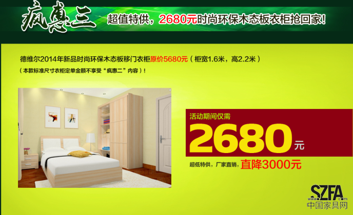 2014年新品時(shí)尚環(huán)保板材“木態(tài)板”移門(mén)衣柜,原價(jià)5680元,活動(dòng)期間僅需2680元,搶到就是賺到!