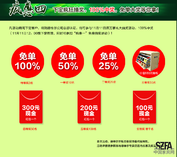 德維爾衣柜“雙十瘋惠”具體優(yōu)惠活動(dòng)如下: