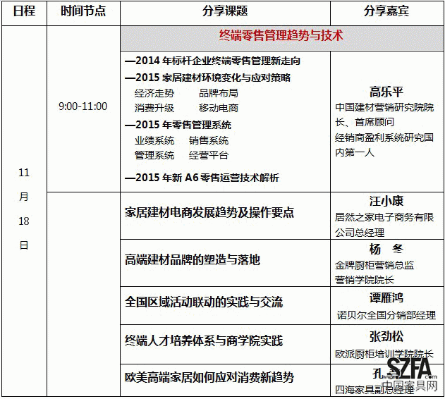 在“2015年家居建材零售技術(shù)與未來行業(yè)營銷峰會(huì)”上,您將與標(biāo)桿企業(yè)的營銷高手、家居建材營銷管理專家面對(duì)面交流、分享與探討,特邀嘉賓: