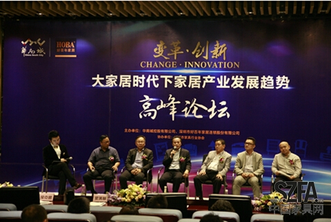 深圳市家具協(xié)會會長侯克鵬先生、深圳市零售行業(yè)協(xié)會、深圳市連鎖商業(yè)協(xié)會會長花濤先生、粵港福建家居商會會長、偉安家具董事長張呈峰先生、深圳市家具協(xié)會執(zhí)行會長、仁豪家具董事長尤國忠先生、華南城集團執(zhí)行董事兼總裁梁滿林先生、好百年集團總裁韓茂勝先生、好百年集團副總裁謝曄女士、深圳華南城總經(jīng)理鄭妙芳女士、華南城網(wǎng)常務副總經(jīng)理葉楠先生、興利集團董事長黃偉業(yè)等領導及知名家居建材品牌廠商代表、資深的家居行業(yè)學者及《深圳特區(qū)報》、《南方都市報》、搜房網(wǎng)、新浪家居、《深圳家具》等十余家媒體朋友們,共300余人匯聚一堂,以“變革·創(chuàng)新”為主題,各抒己見,共同探討在中國大家居時代下,行業(yè)的變革與創(chuàng)新之道。