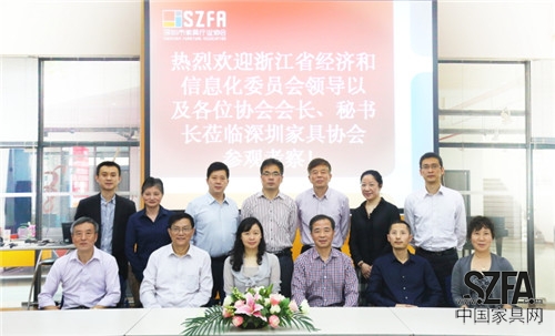 2014年11月28日,浙江省經(jīng)濟(jì)和信息化委員會(huì)法規(guī)處處長(zhǎng)李丹、副處長(zhǎng)鄭志靈與浙江省家具協(xié)會(huì)會(huì)長(zhǎng)蔣鴻源、浙江省三會(huì)秘書長(zhǎng)吳祎泓、浙江省品牌促進(jìn)會(huì)秘書長(zhǎng)徐偉榮、浙江省軟件協(xié)會(huì)秘書長(zhǎng)屠嬌絨、浙江省保健協(xié)會(huì)秘書長(zhǎng)張艷、浙江省服裝協(xié)會(huì)秘書長(zhǎng)沈茉莉、浙江省投融資傳協(xié)會(huì)秘書長(zhǎng)威健明、浙江省照明協(xié)會(huì)秘書長(zhǎng)許紀(jì)生、浙江省中小企業(yè)協(xié)會(huì)副秘書長(zhǎng)張凱、浙江省燃器具協(xié)會(huì)副秘書長(zhǎng)樂加礎(chǔ)一行在深圳市家具行業(yè)協(xié)會(huì)秘書長(zhǎng)洪小惠的陪同下參觀考察深圳市家具行業(yè)協(xié)會(huì),觀摩了深圳家協(xié)包括會(huì)展策劃、設(shè)計(jì)研發(fā)、傳媒中心、集成研發(fā)、產(chǎn)業(yè)規(guī)劃以及檢測(cè)中心在內(nèi)的七大模塊運(yùn)作現(xiàn)狀。
