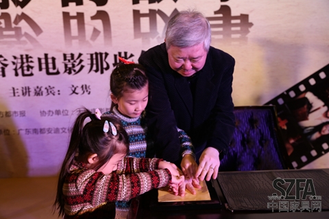 文雋和兩個(gè)女兒一起為羅浮宮大家講堂手印留念