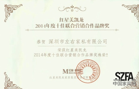 左右家私榮獲“2014年度十佳聯(lián)合營銷合作品牌”