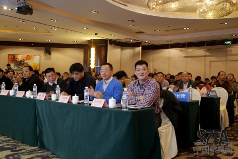 2014年11月26日,山東省家具協(xié)會五屆四次理事擴大會議暨“新常態(tài)下家具行業(yè)創(chuàng)新發(fā)展峰會”在山東濟南隆重召開。來自全省家具企業(yè)、機械輔料企業(yè)、門窗企業(yè)、櫥衣柜企業(yè)、商城以及媒體的近500名代表共同參加了本屆年會。青島展辰新材料有限公司總經(jīng)理劉華明、展辰涂料集團家具漆營銷服務(wù)中心品牌總監(jiān)蔣健受邀出席會議。